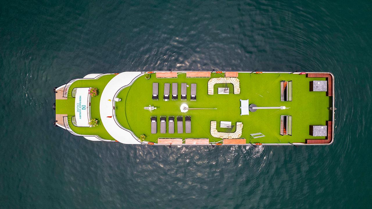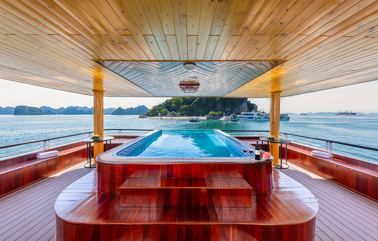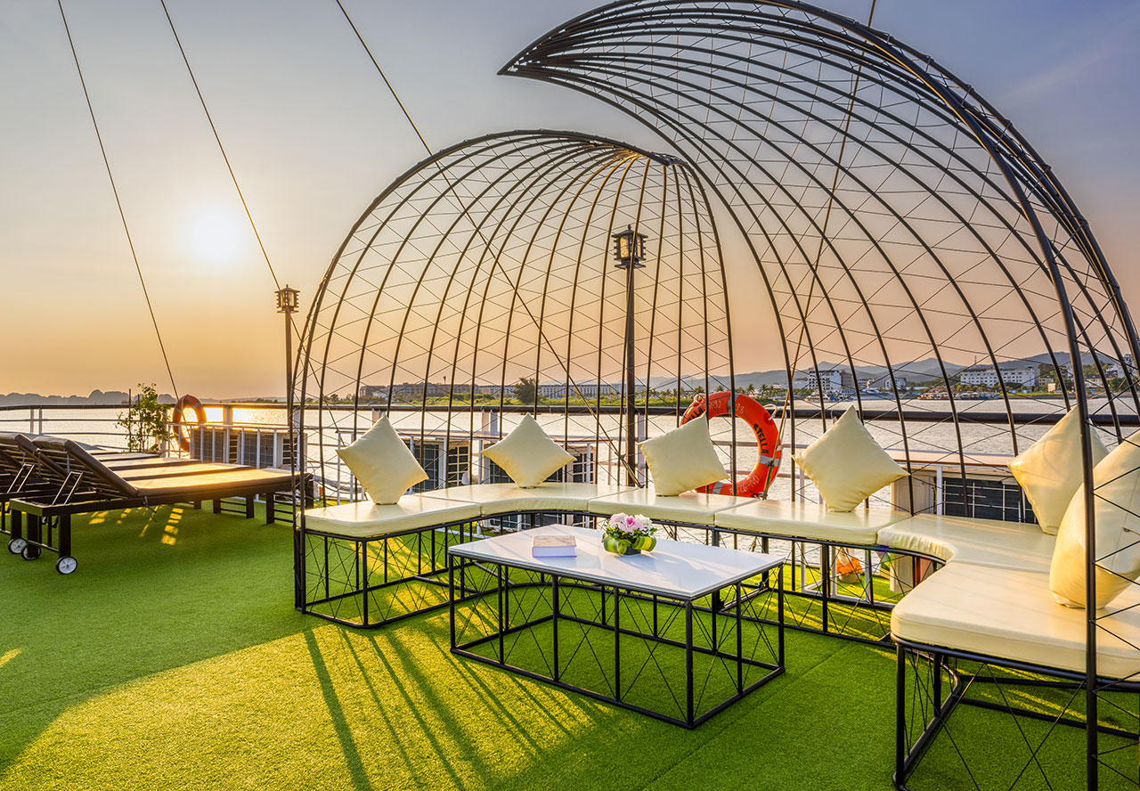The cruise will passing the most beautiful spots in Ha Long Bay such as: Stone Dog, Stone Incense Burner & The Kissing Rocks…